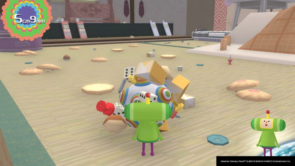 Pocos juegos entregan una jugabilidad tan simple como lo hace Katamari Damacy Reroll. Aparentemente, aquí solo necesitas solo dos botones, pero en algunos momentos tenemos que subir pendientes o cruzar puentes para obtener los objetos necesarios y hacer crecer nuestro Katamari. Por otra parte, hay algunos lugares a los que podemos acceder solamente después de cumplir con un cierto tamaño. Así que no te dejes engañar, pues este es un título que necesita de ciertas habilidades para ser completado.