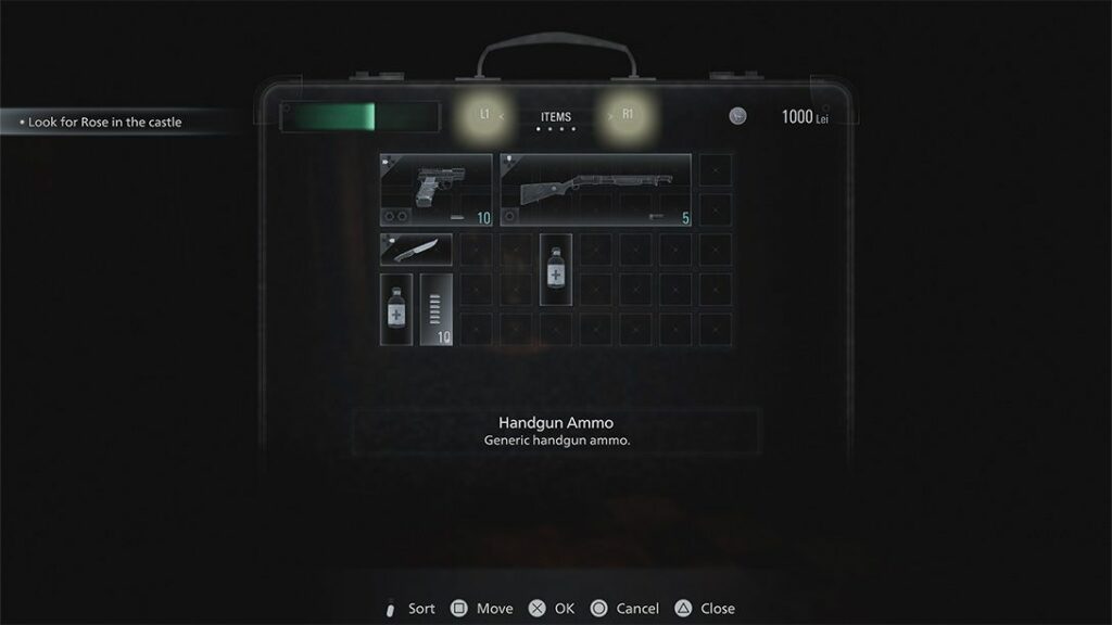 El nostálgico baúl de objetos está de regreso y al igual que las entregas originales, en Resident Evil Village debemos hacer un tipo de juego de Tetris para acomodar todo nuestro equipo y no perder nada en el camino. En ocasiones llevamos el maletero lleno y necesitaremos hacer espacio para poder colocar algo más, pero si decidimos dejar algo afuera no habrá manera de poder recogerlo. En la tienda también podemos encontrar ampliaciones de baúl por una módica cantidad de dinero, así que te recomiendo comprarlo en cuanto puedas para no tener que dejar nada atrás.