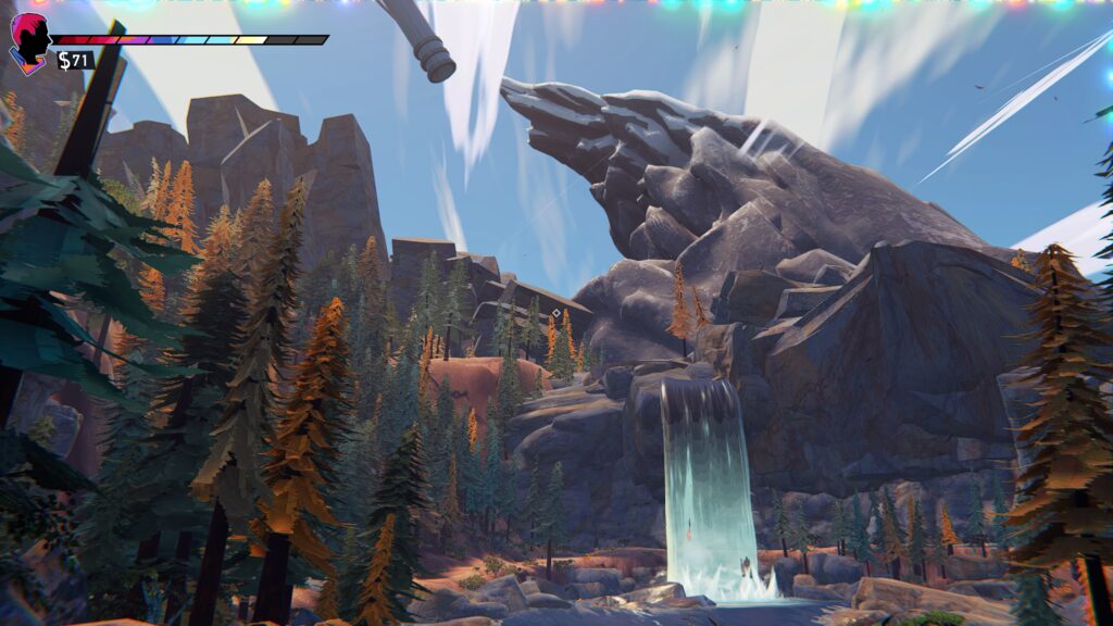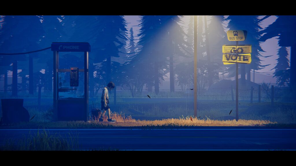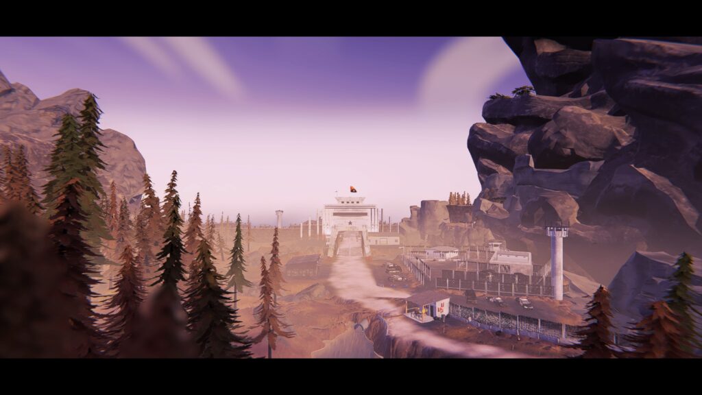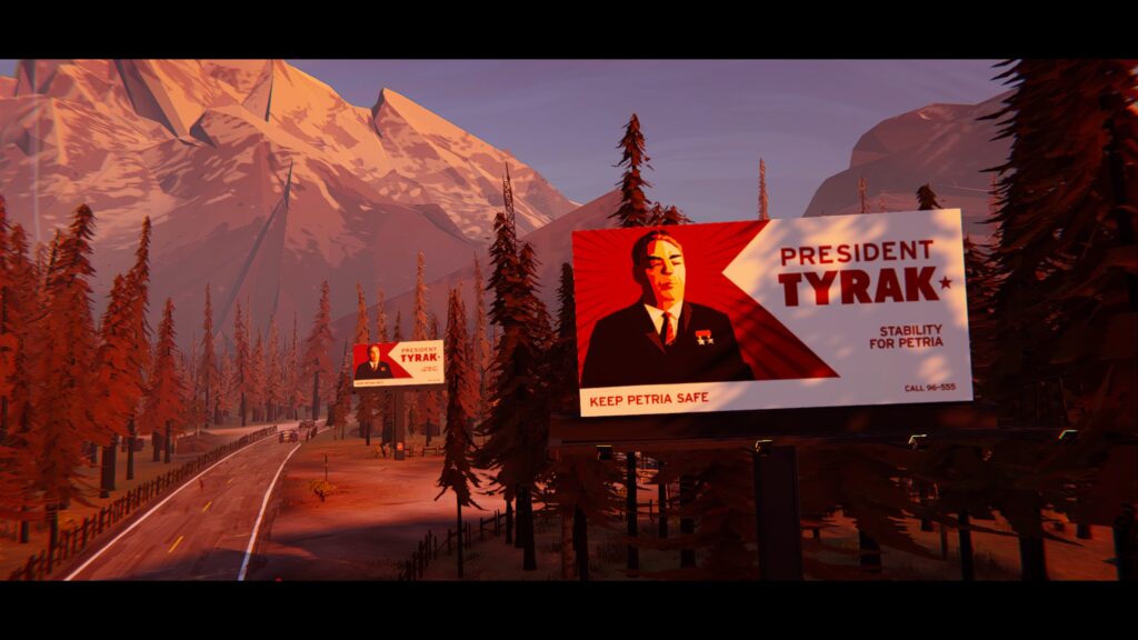 Ahora, si bien es cierto que Road 96 tiene muchos puntos a favor, sigue siendo un título con un presupuesto modesto, lo cual se evidencia en su aspecto técnico. Por ejemplo, la distancia de dibujado es terrible, las caras de los personajes secundarios son bastante repetitivas y las poquísimas cinemáticas tienen, extrañamente, una resolución muy baja. También está el aspecto gráfico low-poly, que es un arma de doble filo: por una parte, se mezcla muy bien con la grandiosa iluminación para crear grandes postales dignas de una captura de pantalla. Sin embargo, los modelos y movimientos de los personajes son mecánicos y nada realistas, lo que le quita cierto peso a los momentos más emocionales.