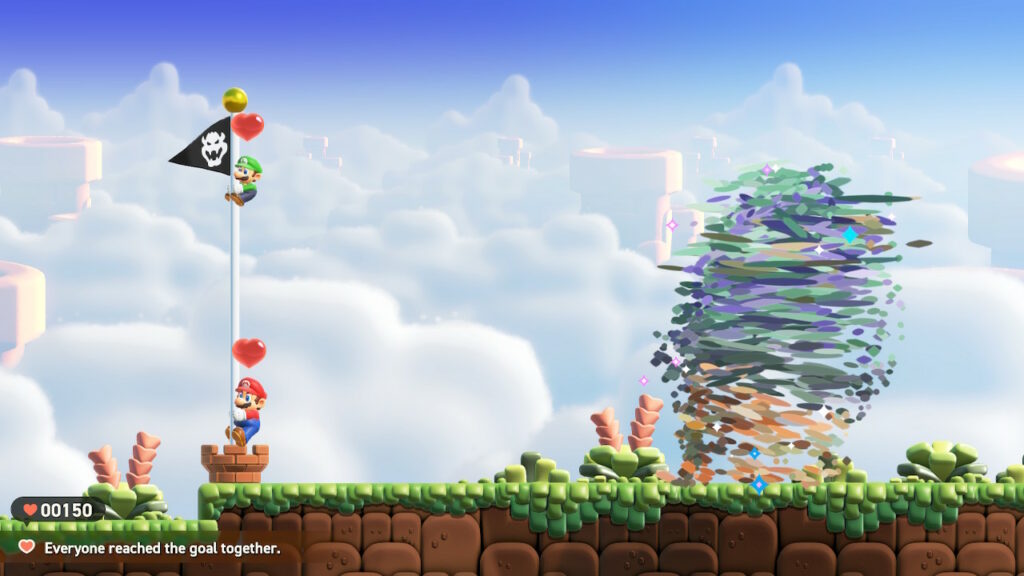 Este estilo de juego lleva a la creación de una diferente y excelente experiencia en la cual no puedes hablar, pero puedes comunicarte a través del movimiento. Ya sea que estés intentando mostrarle a tus nuevos amigos dónde encontrar una de las tres monedas especiales escondidas en cada nivel o un bloque oculto que te permita completar niveles especiales de búsqueda del tesoro, Super Mario Bros. Wonder une a los jugadores como lo harían otros títulos como Journey o Dark Souls, en los cuales se ha creado, con el paso del tiempo, un sentimiento de comunidad y etiqueta entre sus jugadores.