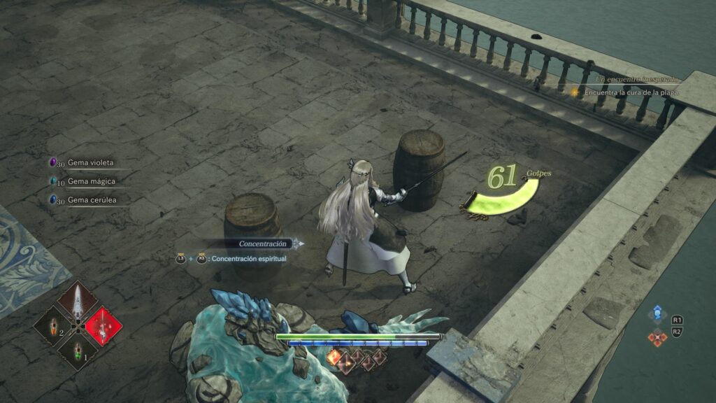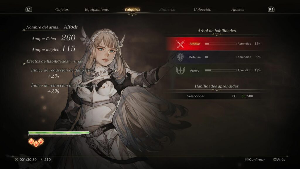 En cuanto al rendimiento en PS4, Valkyrie Elysium intenta llegar a resolución FullHD (1080p), pero constantemente parece correr a 900p, lo que causa una imagen borrosa incluso en escenas no tan complejas. Como último aspecto a recalcar, el título tiene tasa de cuadros desbloquada en PS4, más nunca logra correr a mas de 40, aunque tampoco tiene bajones a menos de 30. Si bien al final es una experiencia jugable, la inconsistencia en fotogramas es molesta e inestable, algo que se podría solucionar limitando los cuadros a 30 por segundo. Si tienes oportunidad de jugar Valkyrie Elysium en una pantalla o monitor con tasa de refresco dinámico (VRR), esto es muy recomendable, pues estos detalles serán imperceptibles.