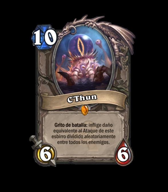 134 nuevas cartas que consigarás comprando sobres tanto con dineral real como dinero dentro del juego. En ellas veremos nuevas abominaciones al igual que algunas conocidas en el mundo de World of Warcraft, entre ellos 4 Dioses Antiguos: C’Thun, Yogg-Saron, Y’Shaarj y N’Zoth mismos que tendrán el dichoso placer de ser cartas legendarias.