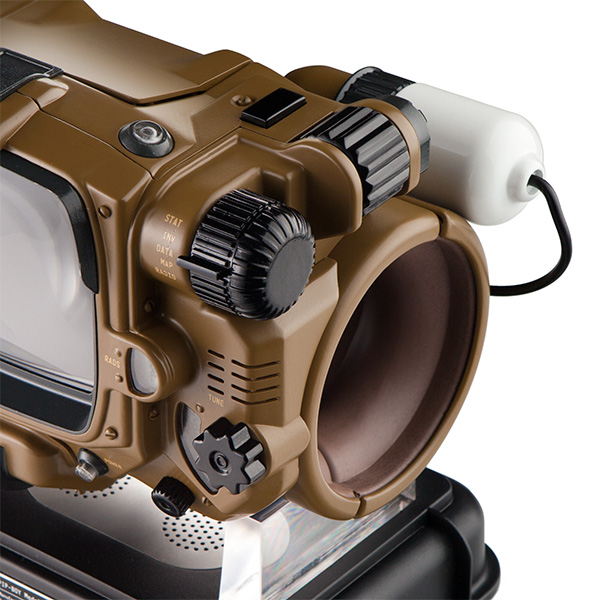El modelo 3000 Mk IV del Pip-Boy es más que un adorno para el brazo, tiene una pantalla integrada con su propio hardware y software y tiene la capacidad de conectar tu celular, o tablet, por vía Bluetooth, para tomar y hacer llamadas, ver contactos, mandar mensajes SMS, escuchar archivos de audio, etc. Por otro lado, también es posible usarlo como reloj despertador o por qué no un accesorio de cosplay, que muestra el estado, los SPECIAL y los Perks como en el juego. De hecho las perillas, los diales y los botones sí funcionan dándole un uso más real al periférico.