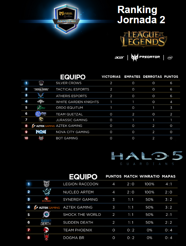 Por otra parte, en el circuito Master Halo 5 vivió el enfrentamiento de Legion Raccoon vs Aztek Gaming y de Sudden Death vs Team Phoenix. Estos enfrentamientos generaron gran expectativa, pues los equipos contaban con grandes jugadores que incluso participaron en el último mundial de Halo.