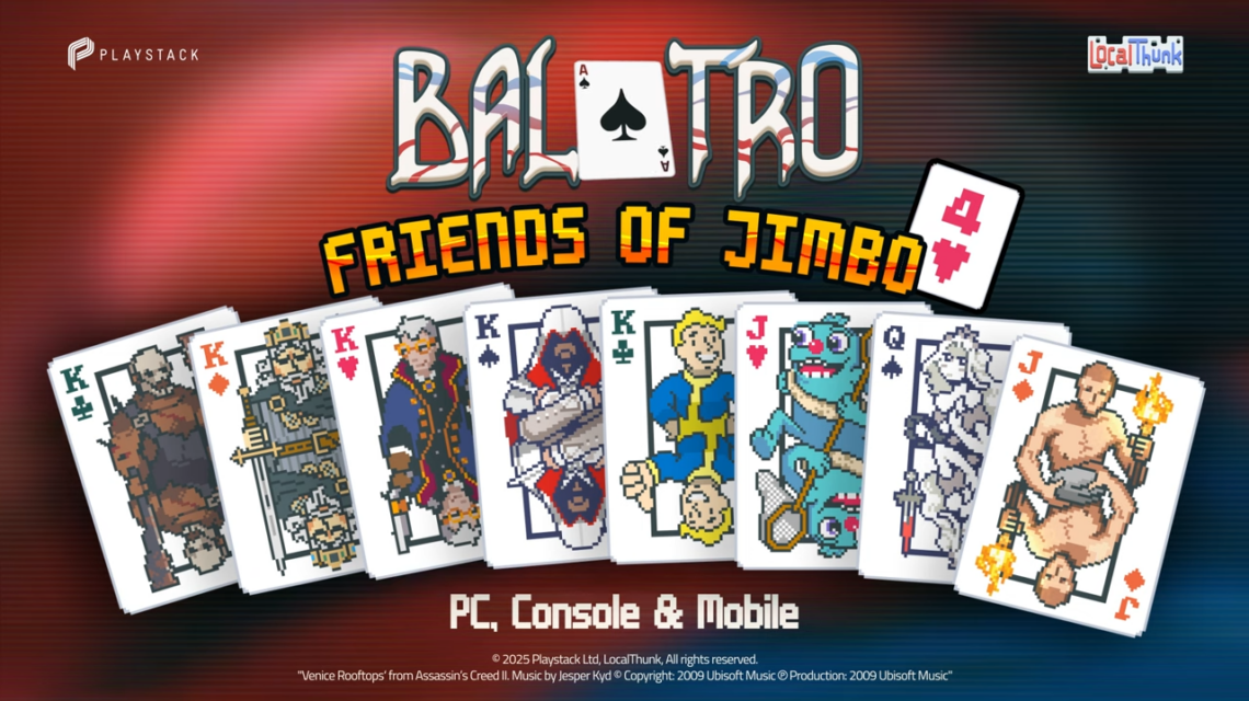 Ubisoft, en alianza con Playstack y LocalThunk, ha anunciado una colaboración especial que traerá la icónica franquicia Assassin’s Creed a Balatro, el popular juego de póquer roguelike. Esta novedad forma parte del paquete Friends of Jimbo 4, una actualización gratuita que estará disponible a partir del 24 de febrero.