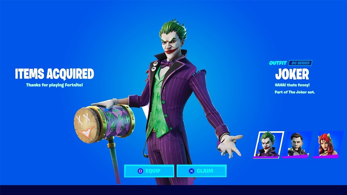 Por medio de un comunicado de prensa, Warner Bros. Interactive Entertainment, Epic Games & DC anunciaron Fortnite: La Última Risa, el lote más reciente que continúa la alianza de distribución mundial de venta para ekl Battle Royale. El paquete más reciente, con temática de los Supervillanos de DC, estará disponible para la familia de consolas de Xbox One, incluyendo Xbox Series X, PlayStation5, PlayStation4 y Nintendo Switch a partir del 17 de noviembre de 2020. Los jugadores también podrán comprar el lote de Fortnite: La Última Risa y descargarlo digitalmente a través de la tienda virtual del juego y de mercados digitales primarios durante la temporada. Mira la imagen promocional: