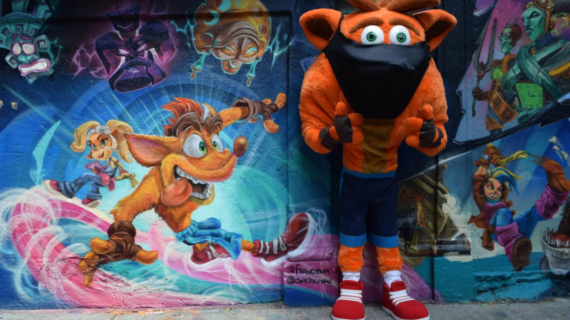 Localizado en Querétaro 181, Colonia Roma Norte en la Ciudad de México, el grafiti de Crash Bandicoot muestra el arte final de Crash Bandicoot 4: It’s About Time en todo su esplendor. El artista Francisco (@francmun) capturó todos y cada uno de los detalles del arte en la pared a lo largo de dos semanas intensas e innumerables latas, donde trabajó sin parar así complacer al “Señor Crash”.
