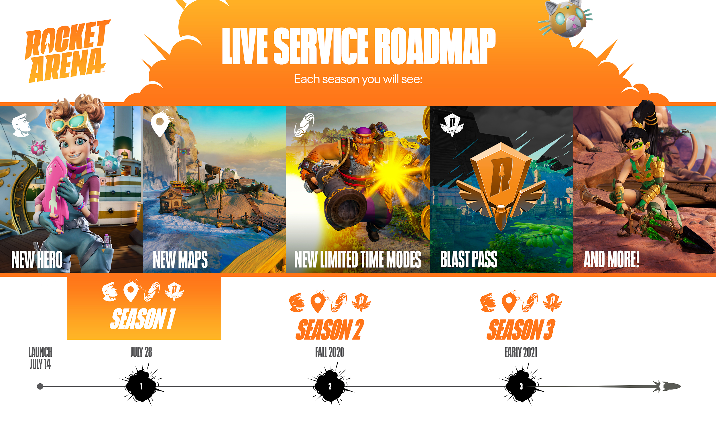 Por medio de un comunicado de prensa, EA y Final Strike Games mostraron todo el contenido que llegará para la primera temporada del nuevo shooter de arena de héroes con crossplay, Rocket Arena. El 28 de julio, sólo dos semanas después del lanzamiento, los servidores añadirán nuevos mapas, modos y variedad de eventos in-game, también habrá un nuevo héroe gratuito, disponible para todos los jugadores y jugadoras.
