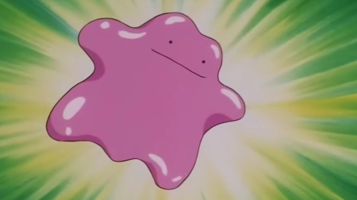 ¿Puede hacer esto Ditto? En la película sí, gracias a un montón de experimentos a los que ha sido sometido el Pokémon. Y lo peor de todo es que Howard Clifford nunca pudo encontrar remedio para los «ojos de botón» de Ditto.