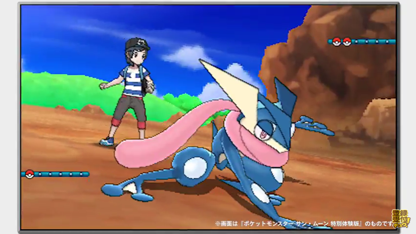 Ash-Greninja será un Pokémon obtenible en el demo de Pokémon Sun & Moon y lo podremos llevar al juego completo una vez que éstos sean lanzados. La nueva forma de Greninja tiene su origen en un antigua leyenda de la región de Kalos, misma que menciona un lazo tan fuerte entre entrenador y Pokémon que los corazones de ambos llegaron a sincronizarse y Greninja pudo cambiar de forma durante los combates.