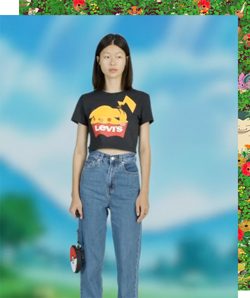 Inspirada en la primera temporada de la serie animada original de Pokémon, la colección incluye una gama de prendas en denim, tops, pantalones, camisetas y accesorios que presentan gráficos y estampados, tanto de los populares personajes, como de los entornos boscosos de la región de Kanto. Entre las prendas más destacadas se encuentran la Vintage Fit Trucker Jacket de los años 90 y el nuevo 551 Z Authentic Straight jeans en color índigo lavado a la piedra, ambos con parches bordados de gran tamaño de Pikachu y el rayo del Pokémon de tipo eléctrico. Y para otra divertida combinación, también está la Vintage Fit Trucker y el 551Z Authentic Straight, con un llamativo diseño de bosque lleno de Pokémon.