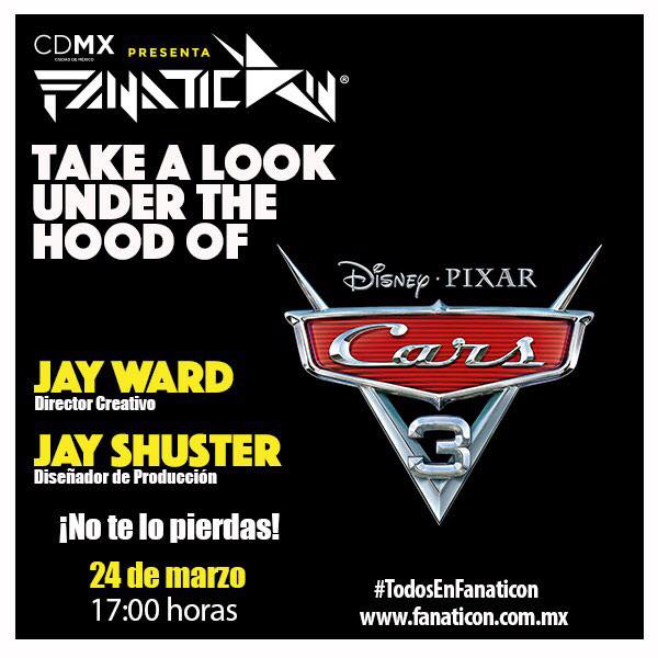 - 17:00 – Disney Pixar con Jay Shuster y Jay Ward (Directores creativos Cars 3)