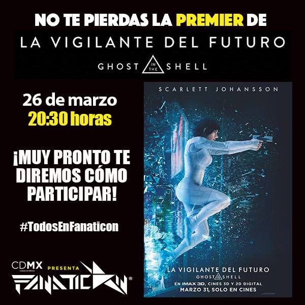 - 20:30 – Paramount Pictures – Premiere Ghost In The Shell (La vigilante del Futuro)