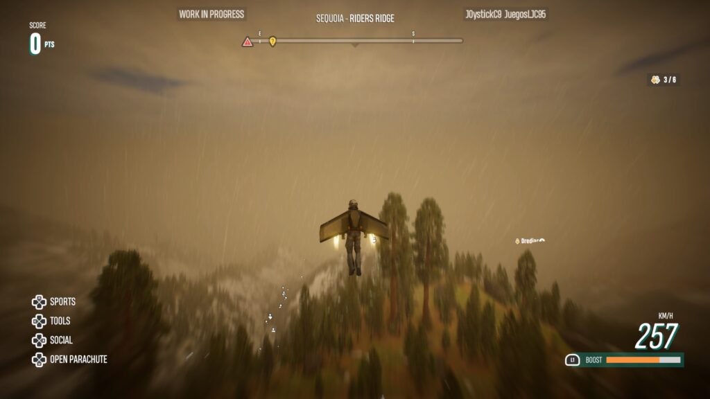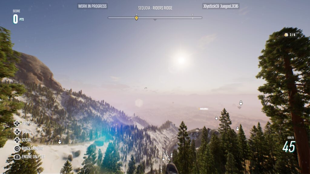 Sin embargo, no nos saltemos lo básico, que implica resaltar las diferencias entre Steep y Riders Republic. En general, Steep se enfocó en cuatro experiencias: snowboarding, esquí, parapente y trajes aéreos o wingsuits. Posteriormente, con DLC, añadió otros métodos de transporte, incluso añadiendo trajes de propulsión a cohete: afortunadamente, Riders Republic logra tomar lo que es en mi opinión lo mejor de Steep y permite simplificarlo para crear un sistema bastante agradable.