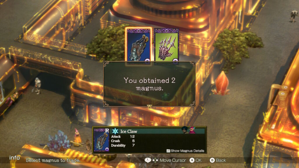 Cada personaje cuenta con un mazo de cartas Magnus, las cuales contienen armas, hechizos, armaduras, fruta, material curativo, cámaras y ataques definitivos. El objetivo de cada turno es hilar las cartas a nuestra disposición para crear un combo capaz de destruir al enemigo, mientras también nos defendemos de los ataques contra el enemigo con cartas de armadura. Poco a poco esto va adquiriendo más complejidad, ya sea a través de aumentos al límite de cartas por combo o la posibilidad de hilar series de números (los cuales forman parte de cada carta) para obtener bonos capaces de hasta triplicar el daño o curaciones que realizamos o mitigar casi por completo los ataques recibidos.
