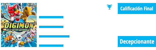 Para finalizar, ya que no hay mucho que más que mencionar, Digimon All Star Rumble es un producto muy mediocre y decepcionante que ni siquiera es recomendable o será disfrutable para los mayores seguidores de la franquicia. Una historia sosa, gráficos que parecen de generación antepasada, un control muy mejorable y nulos extras se fusionan para hacer de All Star Rumble uno de los juegos más decepcionantes que nos ha dejado este 2014.