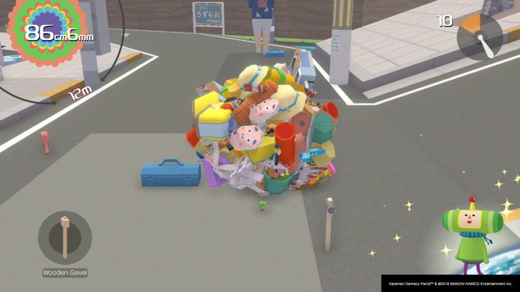 Pocos juegos entregan una jugabilidad tan simple como lo hace Katamari Damacy Reroll. Aparentemente, aquí solo necesitas solo dos botones, pero en algunos momentos tenemos que subir pendientes o cruzar puentes para obtener los objetos necesarios y hacer crecer nuestro Katamari. Por otra parte, hay algunos lugares a los que podemos acceder solamente después de cumplir con un cierto tamaño. Así que no te dejes engañar, pues este es un título que necesita de ciertas habilidades para ser completado.