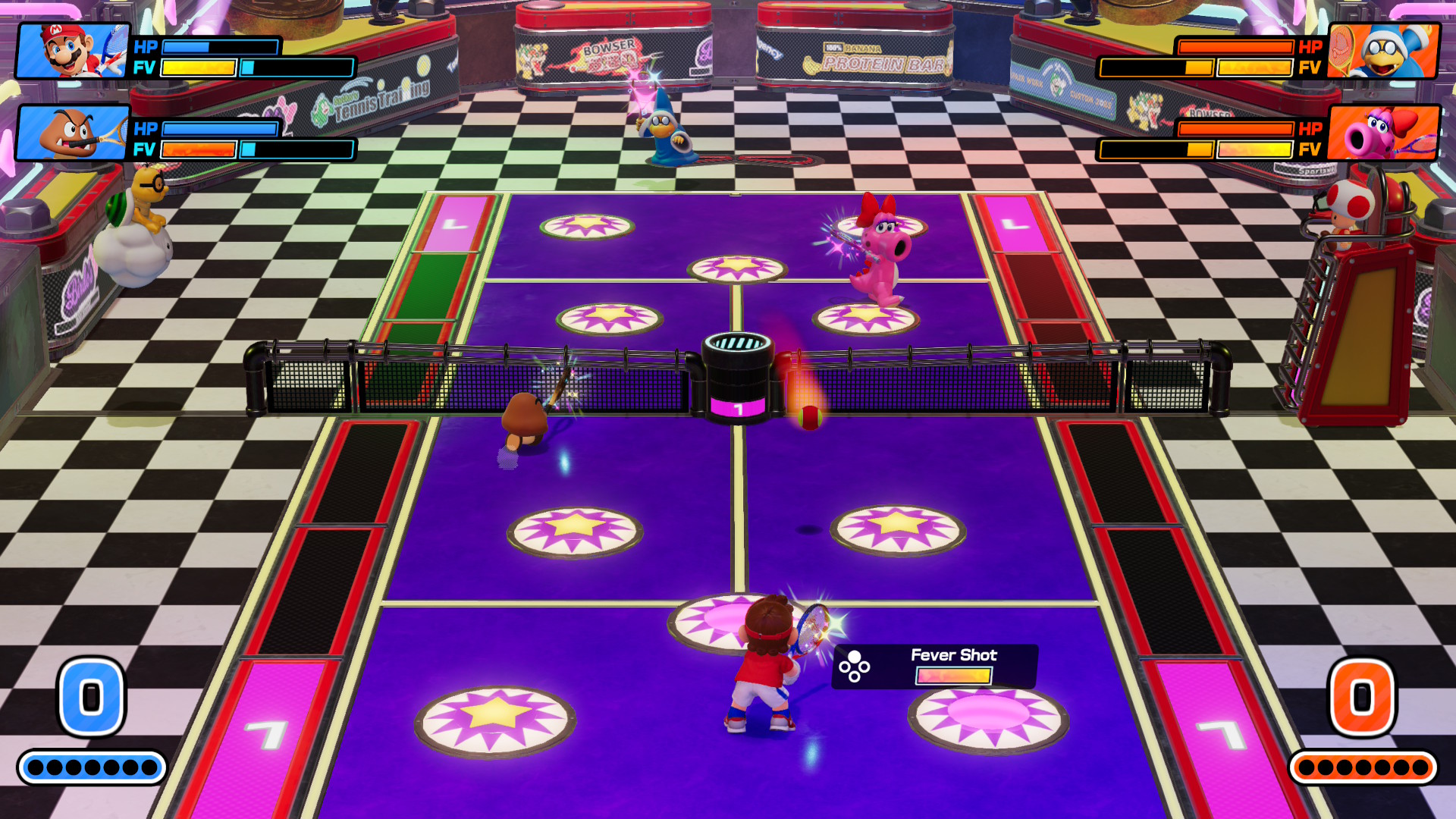En este sentido, Mario Tennis Fever se parece mucho más a un juego de fiesta que Mario Tennis Aces, que sin duda estaba mucho más enfocado a la habilidad del jugador con sus posicionamientos y movimientos especiales. Aunque el bucle de jugabilidad básico es parecido, ligeros cambios permiten que Fever sea más accesible para nuevos jugadores, y las raquetas furor hacen que cualquier partido sea un verdadero desastre lleno de colores y efectos especiales del mundo de Mario.