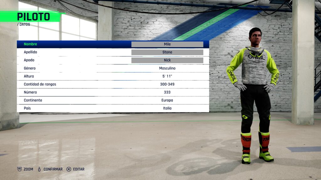 Monster Energy Supercross – The Official Videogame 4 nos da la oportunidad de crear a nuestro personaje para forjarnos como leyenda dentro de la feroz competición. Lamentablemente, las opciones son muy básicas, con un número definido de modelos los cuales solo podremos modificar en tonos de pelo y ojos. Así, crear un clon de nosotros no es posible, pero al ser un juego de carreras este no es su punto principal. Una vez creando nuestro personaje comienza lo atractivo del título, en donde escogeremos la marca de nuestra motocicleta y el tamaño del motor para entrar a la competencia correspondiente. Todas estas marcas cuentan con las licencias oficiales de las competencias reales, con grandes nombres como KTM, Honda, Kawasaki, etc.
