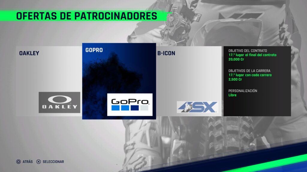 De estos patrocinios, podemos escoger el que mejor nos convenga con ofertas a nuestra consideración, que nos seguirán por el resto de la temporada. Por supuesto, hay que considerar debemos cumplir las metas para continuar con cada equipo o mejorar y conseguir un mejor patrocinio. Y bueno, ¿De qué sirven los patrocinios? evidentemente para poder conseguir créditos que nos permitirán comprar mejores motos y mejorar sus piezas.