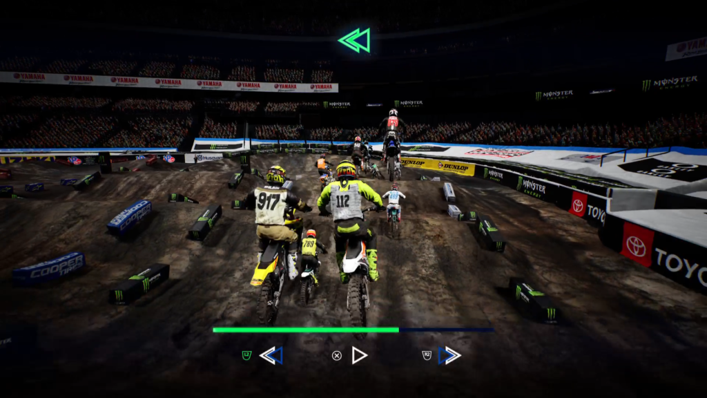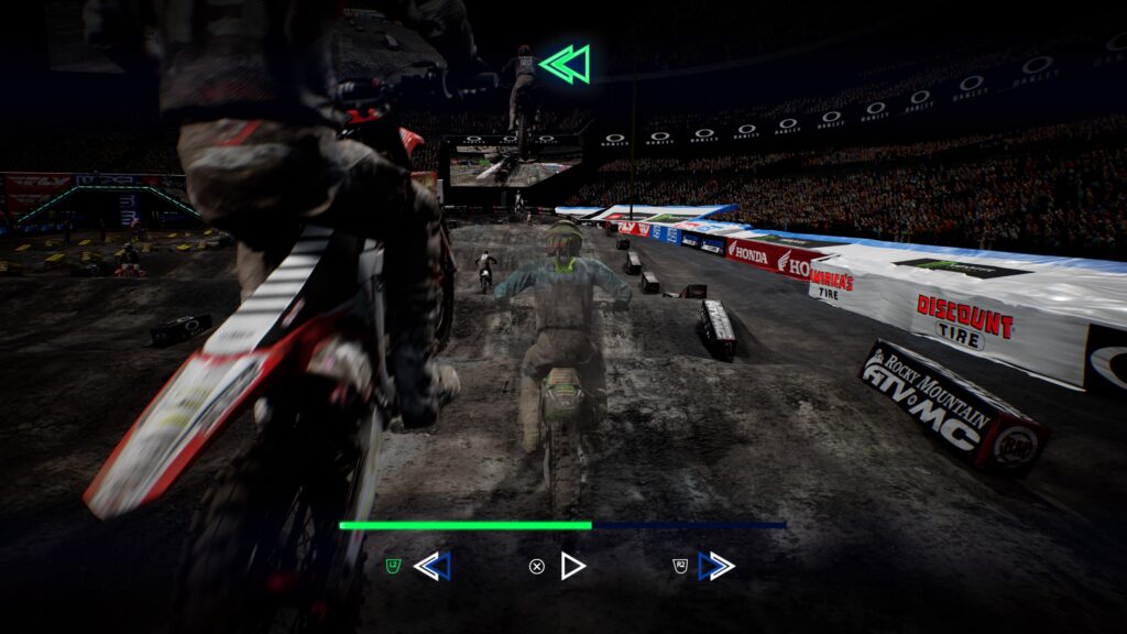 Como en los juegos anteriores, en Monster Energy Supercross – The Official Videogame 4 continua la posibilidad de regresar el tiempo para poder recuperar una mala curva, o una caída. Esta habilidad puede utilizarse 3 veces e incluso algunas veces extra con la única condición de no utilizarla una detrás de otra, pues tenemos que esperar a que se recarguen después de cada uso. A mí parecer esta es una mecánica que poco queda con el tono para un juego de competiciones, pero que probablemente usarás más de una vez gracias a la dificultad del título.