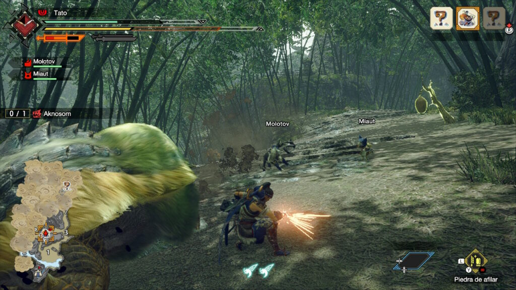 Pero bueno, todo esto es solo un pretexto para entender por qué hay criaturas gigantes en este mundo, ya que, aunque contamos con esta trama y podremos avanzar con algunas misiones que están encadenadas a la historia, lo principal del juego siguen siendo las expediciones de cacería para subir los rangos de cazador, todas estas con la opción de hacerlo solo o multijugador con hasta 3 compañeros dentro de la red. Realmente, en Monster Hunter Rise encontramos una historia que no convence del todo, con pocas horas de duración, pero se agradece su adición para darle más lore al universo.