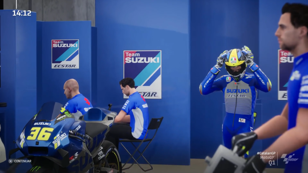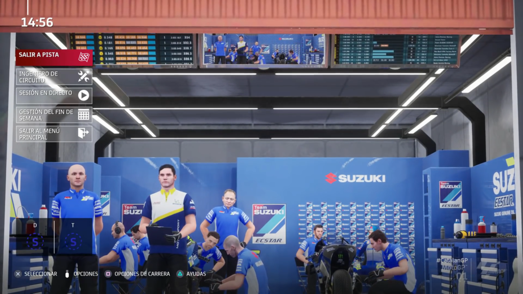 Y bueno, suena muy fácil el comienzo: al igual que en las competiciones reales, contamos con un calendario donde veremos el transcurso de las semanas. A lo largo de cada semana tenemos la opción de asistir a ruedas de prensa para mejorar nuestro carisma, que nos ayudarán a traer más y mejores patrocinadores, y también en el transcurso de estos días podemos hacer pruebas e incluso descansar. Una vez que llegamos a la fecha de competición comienza una de las partes más difíciles y técnicas del modo, ya que tenemos que escoger entre los eventos que pensamos participar en los 3 días del GP, ya sea asistiendo a las rondas de entrenamiento, las calificaciones para conocer nuestra posición de salida o saltarnos todo e irnos directo a la carrera. Este es un metajuego de estira y afloja para saber que nos conviene, para no desgastar a nuestro competidor, pero poder conseguir un buen lugar de salida. Hay un lobby que nos sitúa en los pits para hacer todas las adecuaciones necesarias a nuestra moto y definir los siguientes pasos.