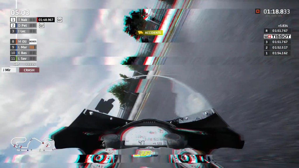Al ser Moto GP21 un simulador en todas sus palabras, ocurren accidentes dentro de las carreras, ya sea caernos de la moto si tomamos una curva mal o acostamos mucho y terminar derrapando. En este caso, el juego ahora cuenta con una característica muy interesante: si esto llega a suceder y no sufrimos una lesión, tenemos que pararnos para ir detrás de la moto y volver a montarla, en muchas ocasiones teniendo que cruzar la pista con riesgo de ser atropellado.