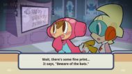 Como mencioné anteriormente, este Mr. DRILLER DrillLand es una reimaginación del título lanzado en 2002 para GameCube. Entonces, ¿por qué lanzarlo nuevamente? Para empezar, Bandai Namco recreó cada una de las escenas (contadas a manera de novela visual), para que se vean en gloriosa resolución FullHD. Cada escena, llena de colores y expresividad como podía esperarse de un encantador título japonés, es llamativa y bonita, y va acompañada de chistosas voces. Y es ese otro de los grandes puntos a favor de este pequeño título: la presentación: es colorido y feliz, es divertido y tiene una banda sonora magistral. Cada nivel, menú o edificio que visites tiene su propio tema, y a veces ni siquiera querrás moverte simplemente para escuchar la musiquita. Los desarrolladores confían tanto en este apartado que hasta incluyeron un reproductor de música para los que simplemente quieren escuchar. La realidad es que es muy probable que cada que juegues te la pases sonriendo… al menos hasta que pierdas en un nivel en el que ya ibas avanzado.