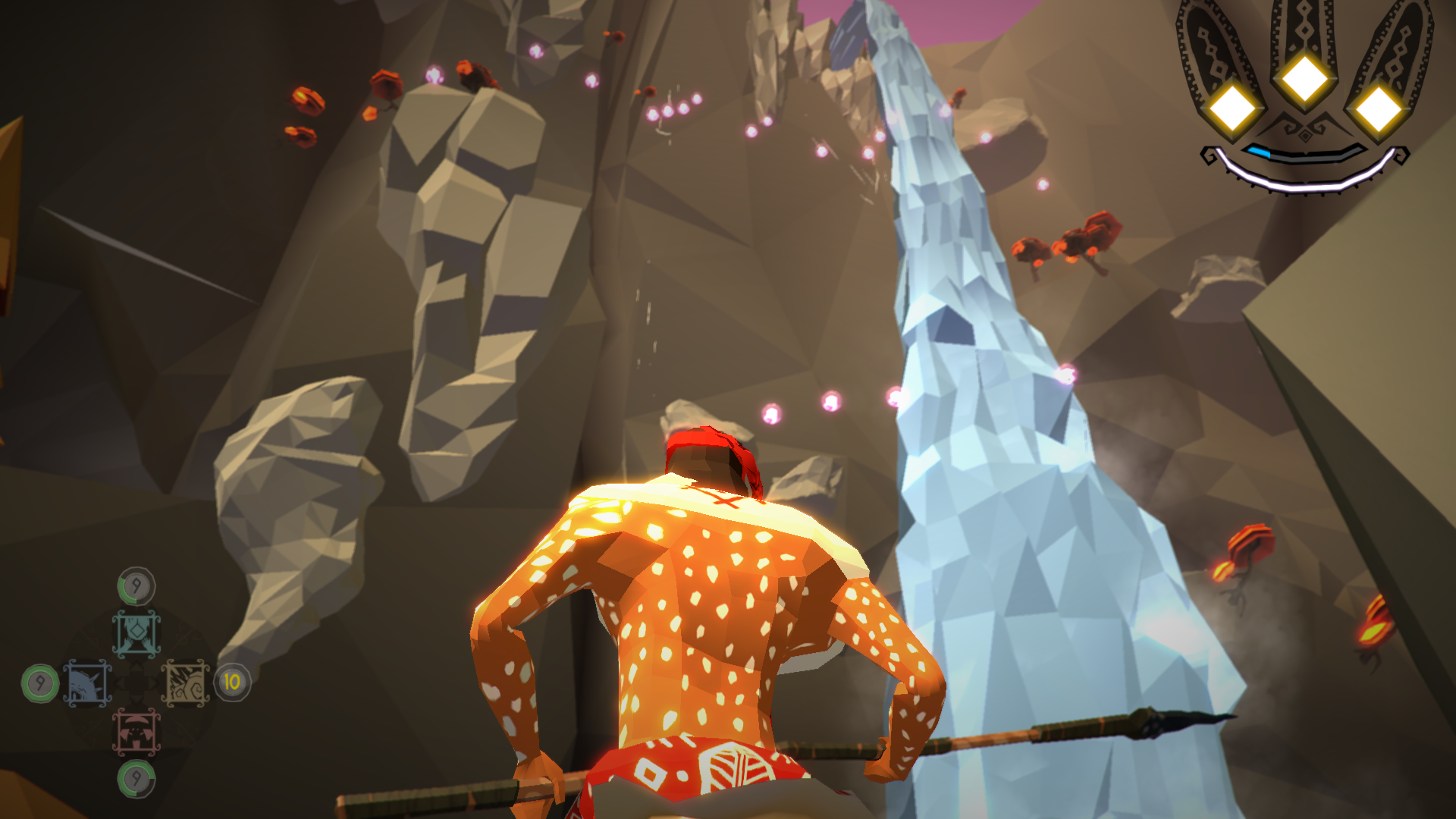 En cuanto a diseño de juego, sin embargo, Lienzo se saca un 10. El diseño de Mulaka, los semidioses, los jefes e incluso los enemigos fue cuidadosamente trabajado, al punto que hay un modo fotografía incluido para que puedas disfrutarlos en todo su esplendor. Aunque parezcan sencillos, los modelos 3D realmente reflejan la culutura, toponimia y mitología de la cultura y Sierra Tarahumara. Asimismo, cada una de las 7 regiones está llena de personalidad con una paleta de colores muy particular, diferentes habitantes y su propio tema musical, cada uno de los cuales captura perfectamente el espíritu prehispánico. Visualmente, Mulaka utiliza un estilo llamado «low-poly» (bajos polígonos), una técnica que permite ofrecer grandes vistas y personajes llamativos sin necesidad de ser hiperrealista. Personalmente, creo que este estilo es maravilloso, pero dado que inspira una idea retro, puede no ser del agrado de los puristas de los gráficos.