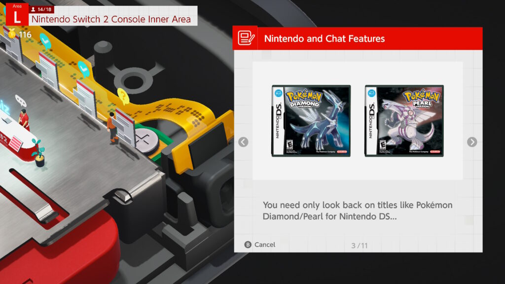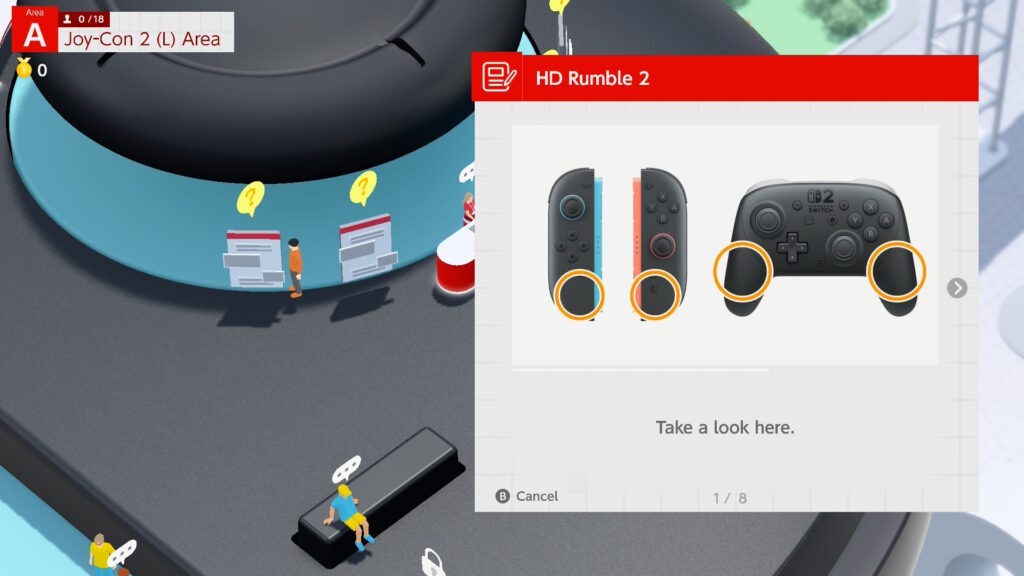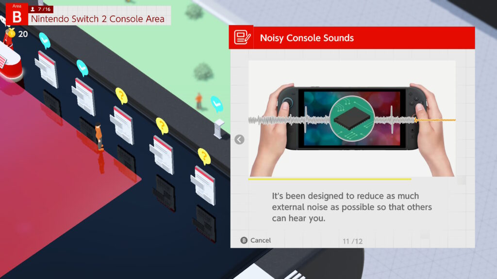La dinámica de Welcome Tour es repetitiva pero concisa: cada “exposición” representa una parte de la Switch 2, y puedes participar en una carrera de sellos para explorar cada sección de cada exposición y conocer la nueva consola como la palma de tu mano.