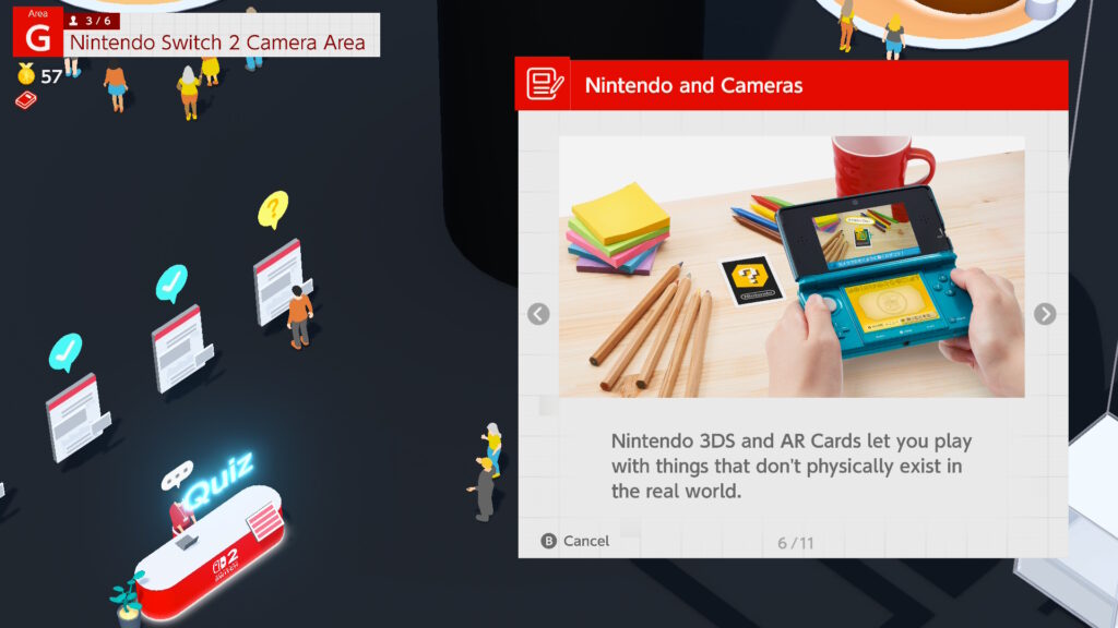 Además de estos sellos ocultos, puedes participar en un trivial sobre la consola, que te lleva a un cuestionario sobre diferentes aspectos: se trata principalmente de fragmentos educativos sobre el nuevo sistema, pero también es un divertido viaje al pasado con la historia de Nintendo.