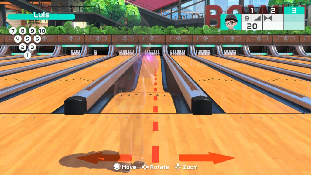 Finalmente, la joya de la corona: el boliche. Wii Sports fue uno de los juegos que más disfruté en mi Wii, principalmente porque intenté durante años conseguir puntajes perfectos en las partidas regulares y minijuegos. En esta ocasión, el juego local incorpora pistas especiales con obstáculos, y el juego en línea cuenta con un sistema multijugador en el que competiremos por conseguir el puntaje más alto para seguir jugando: la competencia es tan feroz que no es nada raro perder en la primera ronda.