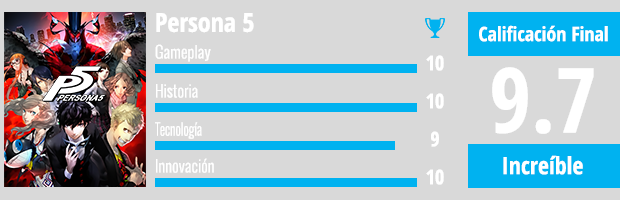 Aunque pueda sonar aventurado, te aseguro que Persona 5 es el mejor JRPG de los últimos 5 años, y probablemente también de la última década. Este juego lo tiene todo: estilo, arte, gameplay, historia, rejugabilidad, entretenimiento y diversión, diversión, diversión. Puedes pasar horas jugando y ni siquiera te darás cuenta. Ya sea luchando en el metaverso o aprendiendo a desenvolverte en la vida real como un adolescente, Persona 5 hace un excelente trabajo para mantenerte siempre deseando más. Si te gustan los juegos de rol o al menos sientes una ligera atracción hacia ellos, debes adquirir este título para ayer. Es una obra maestra.
