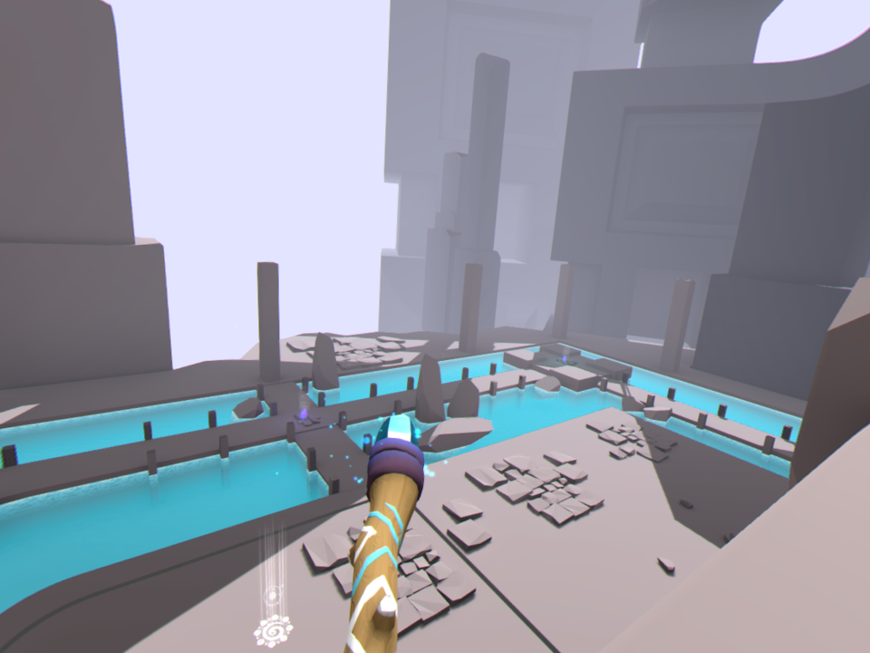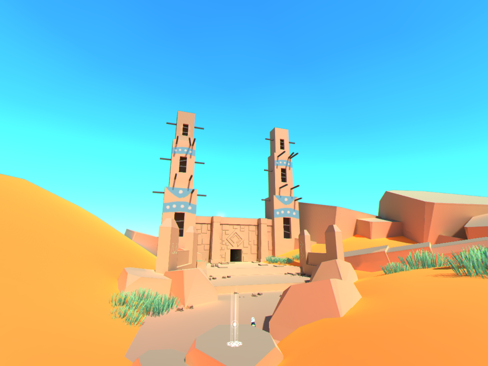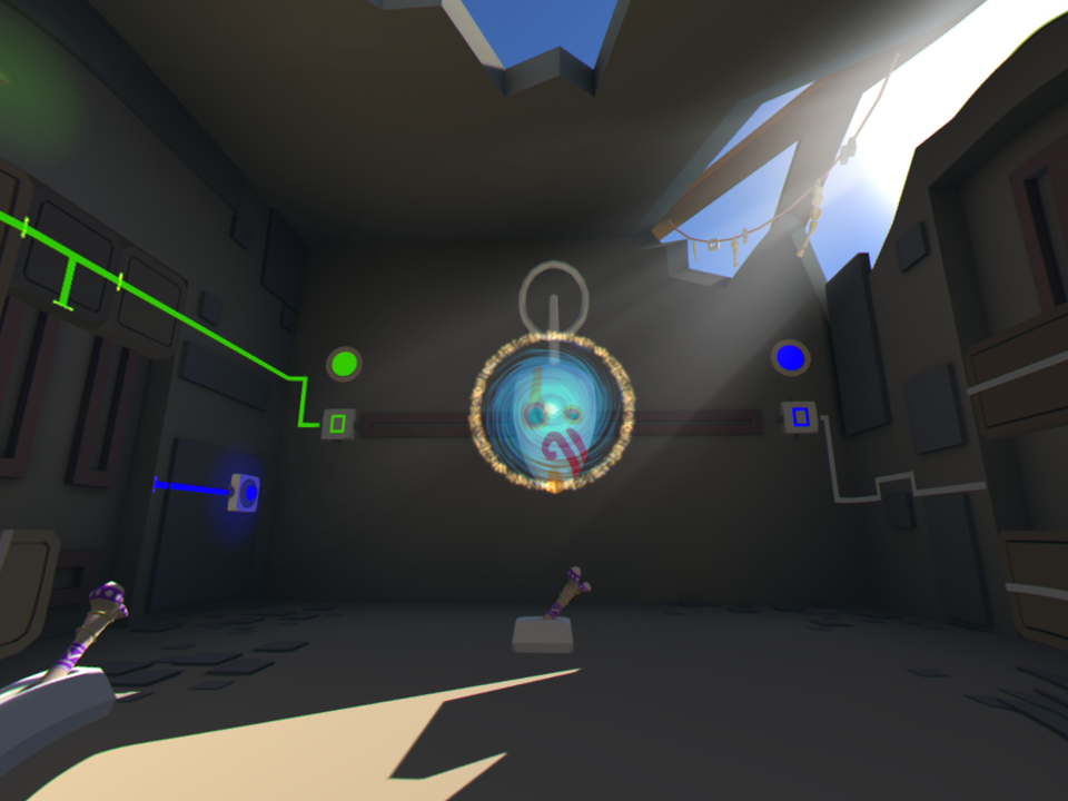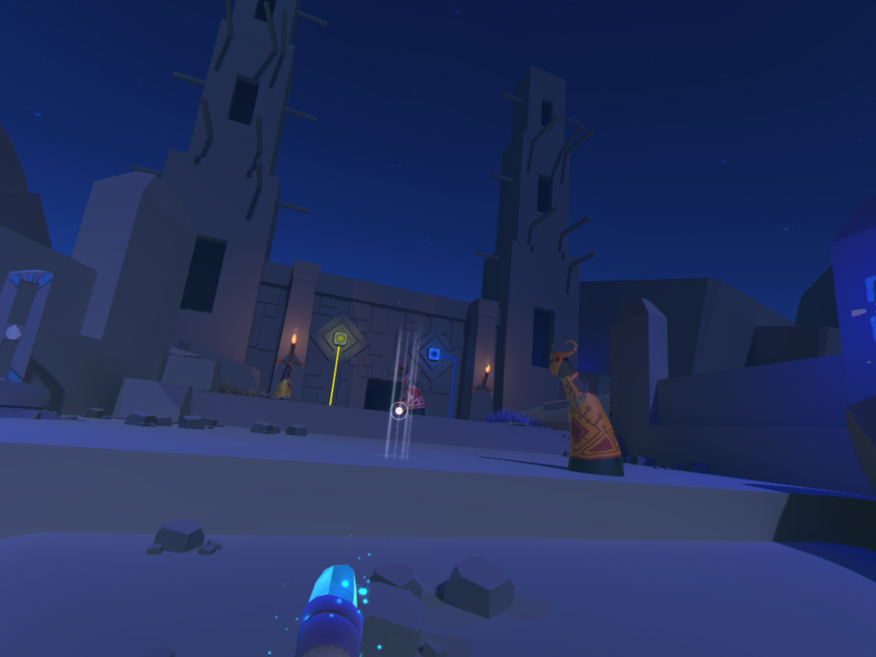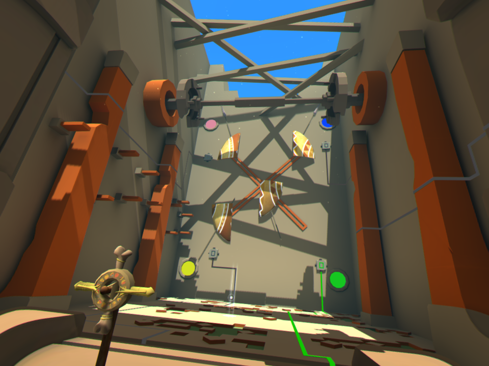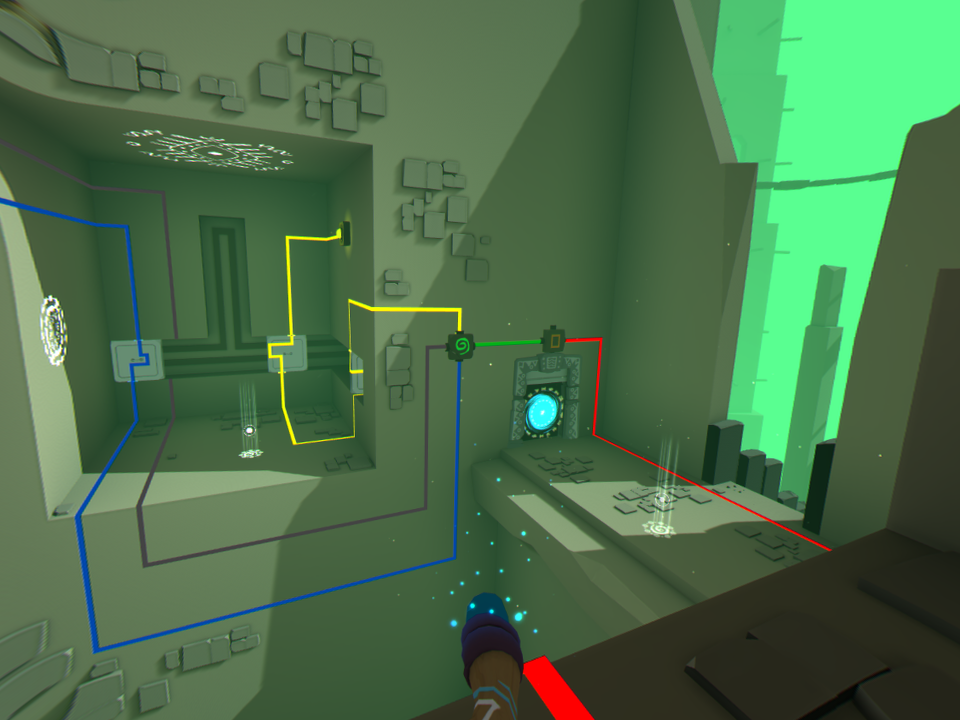 Nuestro objetivo principal es usar un centro que tenemos en la mano para mover objetos y fuentes de energía de colores que hacen las veces de líneas de energía que finalmente abren una puerta que nos deja avanzar al siguiente escenario. Al principio solo tendremos que mover una piedra por aquí y por allá, pero poco a poco los escenarios empiezan a crecer tanto en escala como en dificultad. De pasar de un pequeño templo con tres cuartos y dos líneas de energía con dos colores, pasaremos a grandes campos abiertos con múltiples líneas de energía, media docena de colores, piedras que girar, botones que oprimir y montones de dificultades más. Afortunadamente, los desarrolladores lograron implementar la curva de dificultad de una gran manera, por lo que cada nivel sirve como un tutorial para el siguiente; el avance es orgánico y en ningún momento es desesperante. La dificultad aumenta, sí, pero nunca se siente injusta o imposible.
