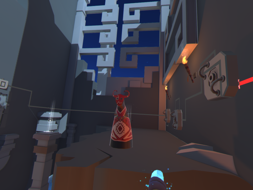 Rangi es, generalmente, un juego con un ritmo semilento. En general podrás ir a tu paso, siguiendo las líneas de energía, explorando y analizando cada cuarto y color todo el tiempo que quieras para poder abrir la puerta finalmente. Sin embargo, hay algunas secciones que, además de agilidad mental, exigen grandes reflejos. Por ejemplo, hay partes en las que tendrás que moverte rápidamente para huir de lava, paredes con picos o de chamanes que te atacan. Aunque breves y esporádicas, estas secciones son muy positivas pues añaden variedad a un gameplay que, sino cansado, sí es un poco repetitivo. Sí, pasarás la mayor parte de tu tiempo conectando y desconectando líneas de energía, aunque afortunadamente no es un proceso tedioso. En primer lugar porque el diseño de niveles es muy bueno, y en segundo porque…