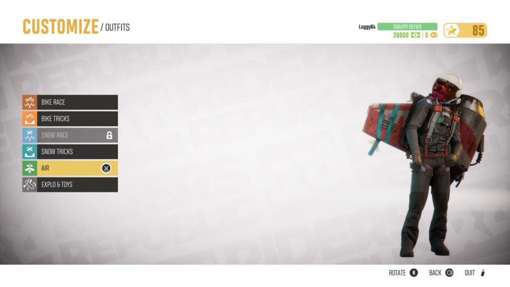 Por otra parte, uno de los elementos adicionales que por buena razón no formaba parte de la Beta es la existencia de patrocinadores. Aunque son una forma poco sútil de incluir product placement, Riders Republic los aprovecha de una forma interesante: de acuerdo con el giro de patrocinador, es posible cumplir retos que se actualizan paulatinamente para subir de nivel con él y recibir recompensas como cosméticos y equipo más poderoso para tu avatar virtual. Ya que solo podemos escoger tres patrocinadores (o tipos de misiones) cuyo progreso se pueda contabilizar mientras competimos, esto lleva a que estemos buscando sinergizar las misiones con las competencias en las que decidamos participar.