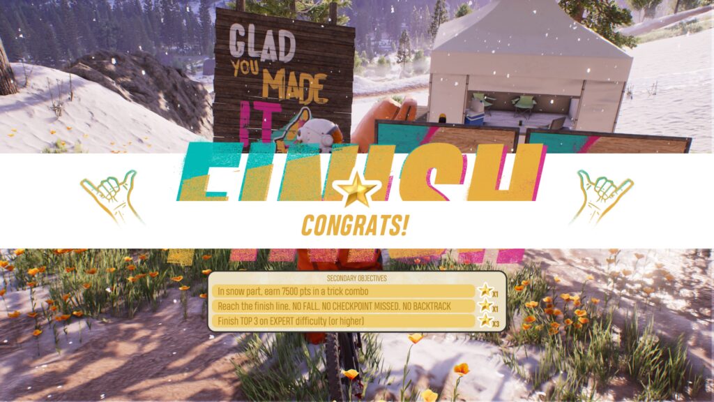 Además de premiarnos por quedar en primer lugar, los eventos de Riders Republic ofrecen más incentivos al triunfar compitiendo en mayores dificultades o usando ciertos equipos de esquí o tablas especiales, esto mediante el sistema de progresión utilizado, las estrellas.