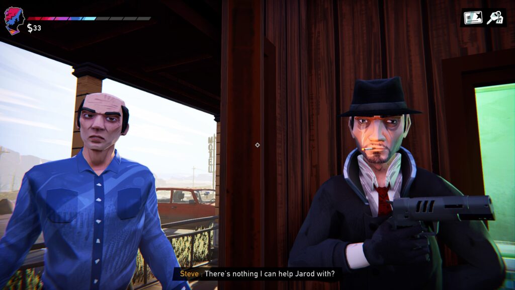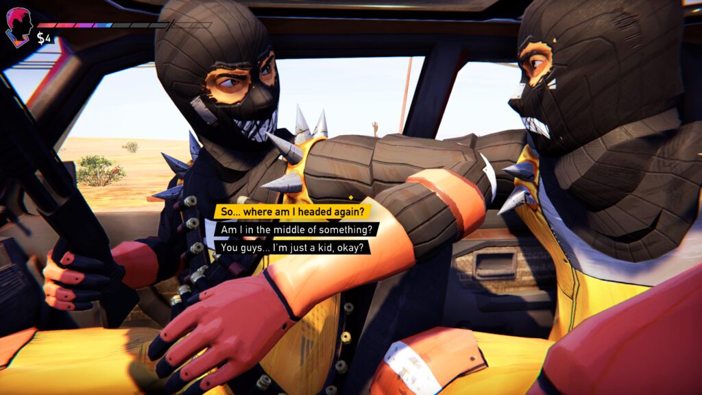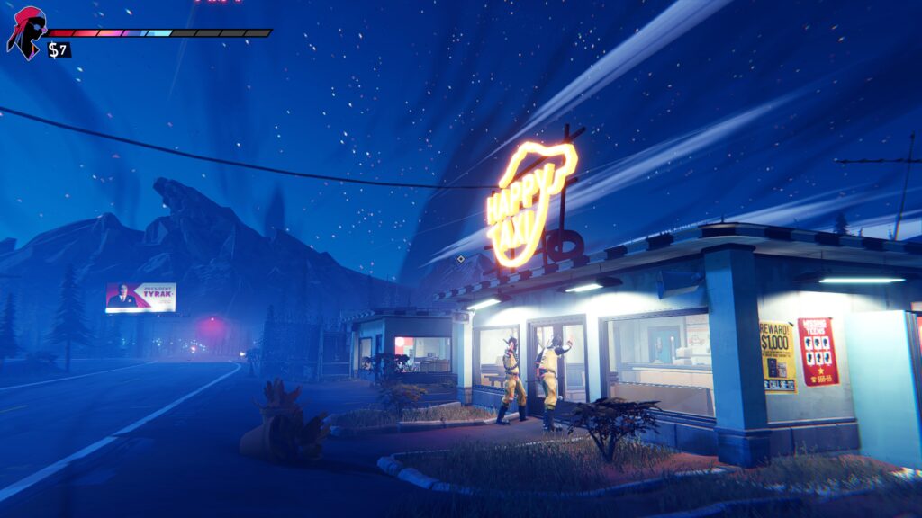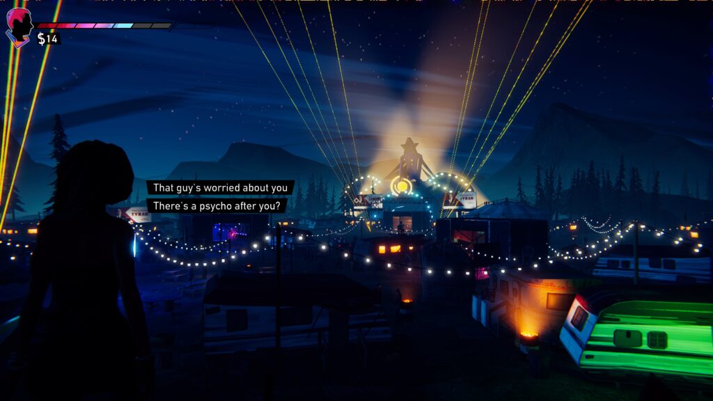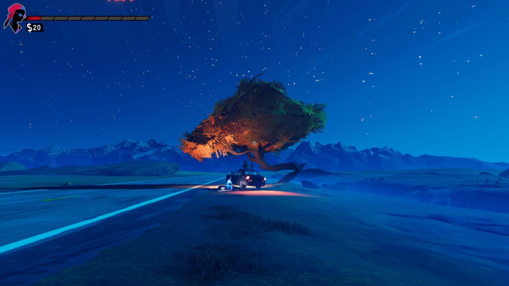 Cada viaje a la frontera en Road 96 toma entre una hora y 2 horas, dependiendo de qué tan a fondo explores cada ubicación. Verás, para ir acercándote a la carretera final, exploras varios escenarios narrativos al azar de una gran lista de posibilidades; algunos son sencillos y relajantes, mientras que otros son estresantes y difíciles. También, inicias con una cantidad de vida y de dinero aleatorias, las cuales debes gestionar para no quedarte pobre o literalmente desfallecer en tu intento de huida.