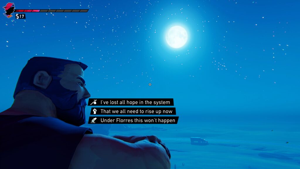Estos escenarios narrativos, que duran entre 10 y 20 minutos, son el punto central de Road 96: en ellos exploras una ubicación en busca de comida, ayuda o dinero, platicas con gente, conoces más sobre el estado de Petria y una incipiente revolución y, sobre todo, investigas cómo conseguir acercarte más a la frontera. De alguna manera, la jugabilidad recuerda a Life is Strange, en el sentido en que puedes explorar a tu ritmo, hablar con personas para obtener información, obtener diferentes consecuencias según las respuestas que des… y varias cosas más. En general, entre más minucioso seas al explorar, tendrás más posibilidades de sobrevivir.