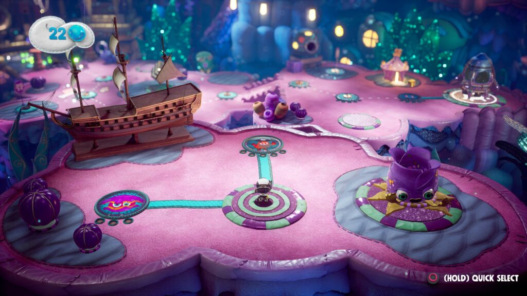 El mayor problema de Sackboy: A Big Aventure es el stuttering, pequeños saltos en la jugabilidad que hacen parecer que la tasa de cuadros por segundo está por los suelos. Al parecer, este es un problema de juegos desarrollados con Unreal Engine 4 y tiene que ver la manera con la que guardan los shaders en caché. En este caso, lo que sucede es que la primera vez que un nuevo elemento o efecto entra en pantalla hay un pequeño stutter, en lo que ese shader se guarda en caché. Lamentablemente, este desperfecto se presenta incluso desde la cinemática inicial, que está llena de saltos, y lo que hace que este título no se sienta tan pulido. Una vez que un shader se cargó por primera vez en teoría debería de quedarse guardado y no deberías de volver a experimentar ese brinco, pero sin duda es una gran molestia que afecta la experiencia. Esperemos que Sumo Digital esté trabajando en una manera de corregir este bug.