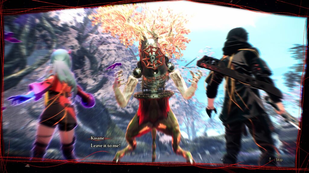 SCARLET NEXUS tiene una manera bastante peculiar de contar su historia. Para empezar, tienes la posibilidad de elegir entre 2 protagonistas: Kasane, que pelea en rango medio con cuchillos y Yuito, que pelea con una espada en rango corto. Ambos son cadetes recientemente aceptados en la OSF, tienen compañeros en común y pueden considerarse hasta colegas, por lo que al final del día experimentan la misma narrativa a nivel general. Sin embargo, cada uno de ellos tiene una saga completamente diferente y también tiene diferentes motivaciones, amigos, una mayoría de eventos únicos y demás, por lo que esencialmente este juego ofrece 2 campañas diferentes que se entrelazan a momentos. De manera parecida a NieR: Automata, a pesar de que hay un hilo conductor general que une ambas rutas, realmente debes terminar ambas perspectivas para entender la historia por completo. Sin duda este método fue un gran acierto, pues ciertas incógnitas que quedan cuando juegas con uno de estos personajes se contestan en la otra ruta y los momentos «¡Oh, así que fue por eso!» son comunes y satisfactorios.