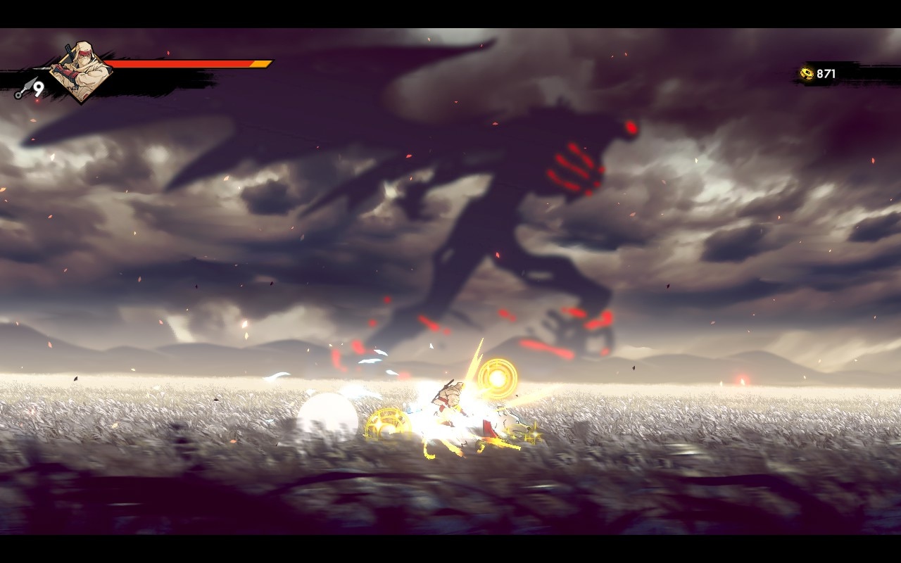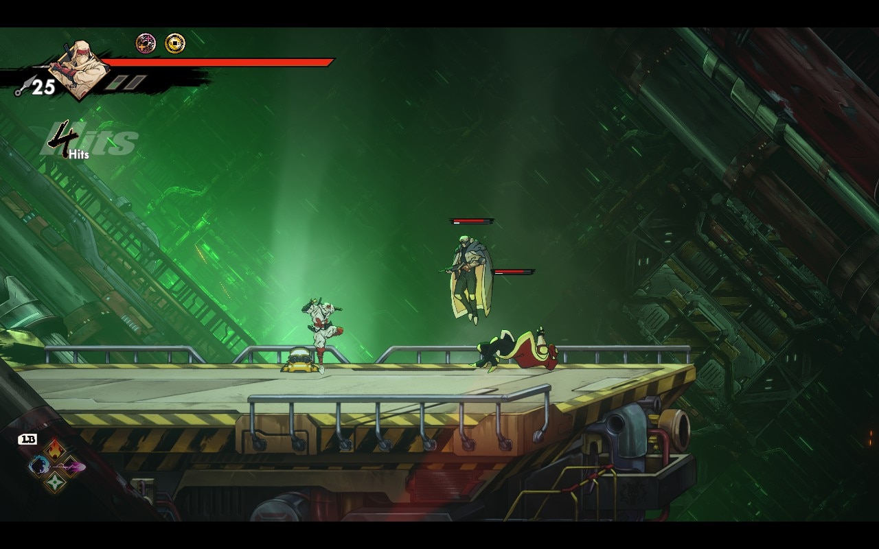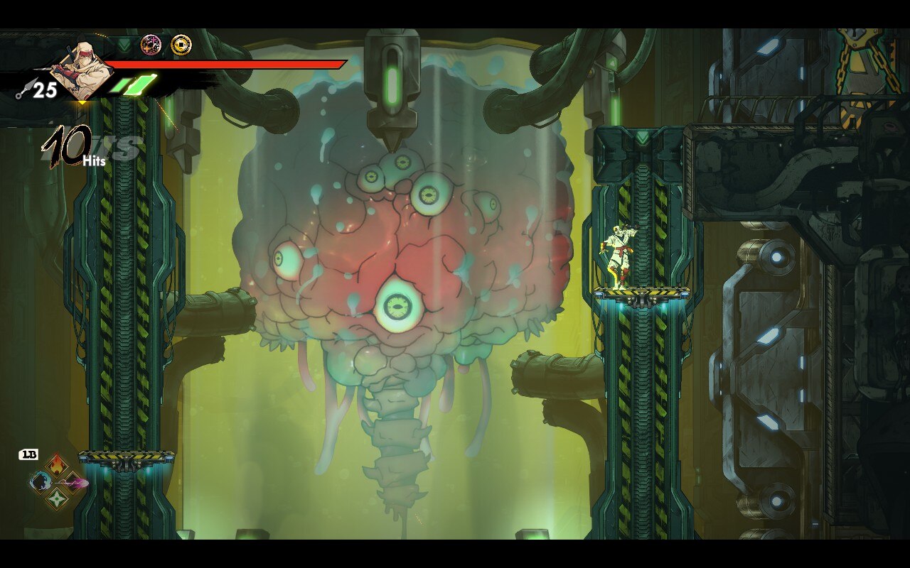 Tras vencer a los enemigos en nuestro camino es posible explorar con un repertorio amplio de habilidades de movilidad. Inicialmente solo podemos hacer saltos dobles o esquivar con volteretas; saltar muros y combinar dichos movimientos junto con ataques es divertido y se siente como jugar Devil May Cry en dos dimensiones.