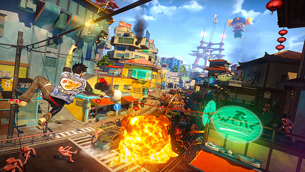 Si bien el título no alcanza los 1080p ni los 60 FPS se nota un trabajo muy bien realizado para entregar elementos en pantalla sumamente interesantes y llenos de color. Será difícil que no te distraigas con algunos lugares del escenario en las misiones, eso sin mencionar la gran extensión del mapa y todo el grindeo que podemos realizar a lo largo y ancho de Sunset City.