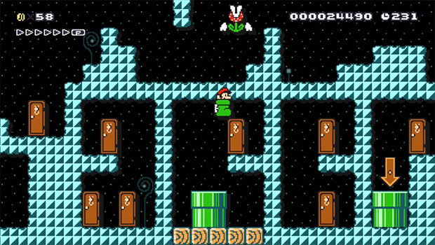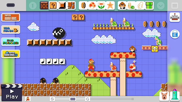 En general las posibilidades de Super Mario Maker son infinitas y podrías pasar de los clásicos niveles del primer Super Mario Bros. a experimentar escenarios que tengan más relación con Metroid o The Legend of Zelda, por la estructura que su creador decidió brindarles. Todo lo anterior es pensando solamente en elementos y características del Super Mario Bros. original, pero Super Mario Maker incluye además otros tres juegos emblemáticos del plomero: Super Mario Bros. 3, Super Mario World y New Super Mario Bros. U. En total podrás crear niveles de cualquiera de los cuatro juegos incluidos, cambiando entre escenarios abiertos, como los del clásico primer nivel, a mundos acuáticos, bajo la tierra, en el cielo o en los interiores del castillo e incluso dando cambios de juego en juego para ver en que título va mejor tu creación. Cada aspecto de juego incluye elementos únicos como el traje de Tanooki al hacer uso de Super Mario Bros. 3 o el Champicóptero en New Super Mario Bros. U, por lo que debes tener en cuenta que sí requieres de un power up especial para tu nivel y ese item está asociado a un juego específico el cambio podría dejar inservible el nivel o volverlo más complicado.