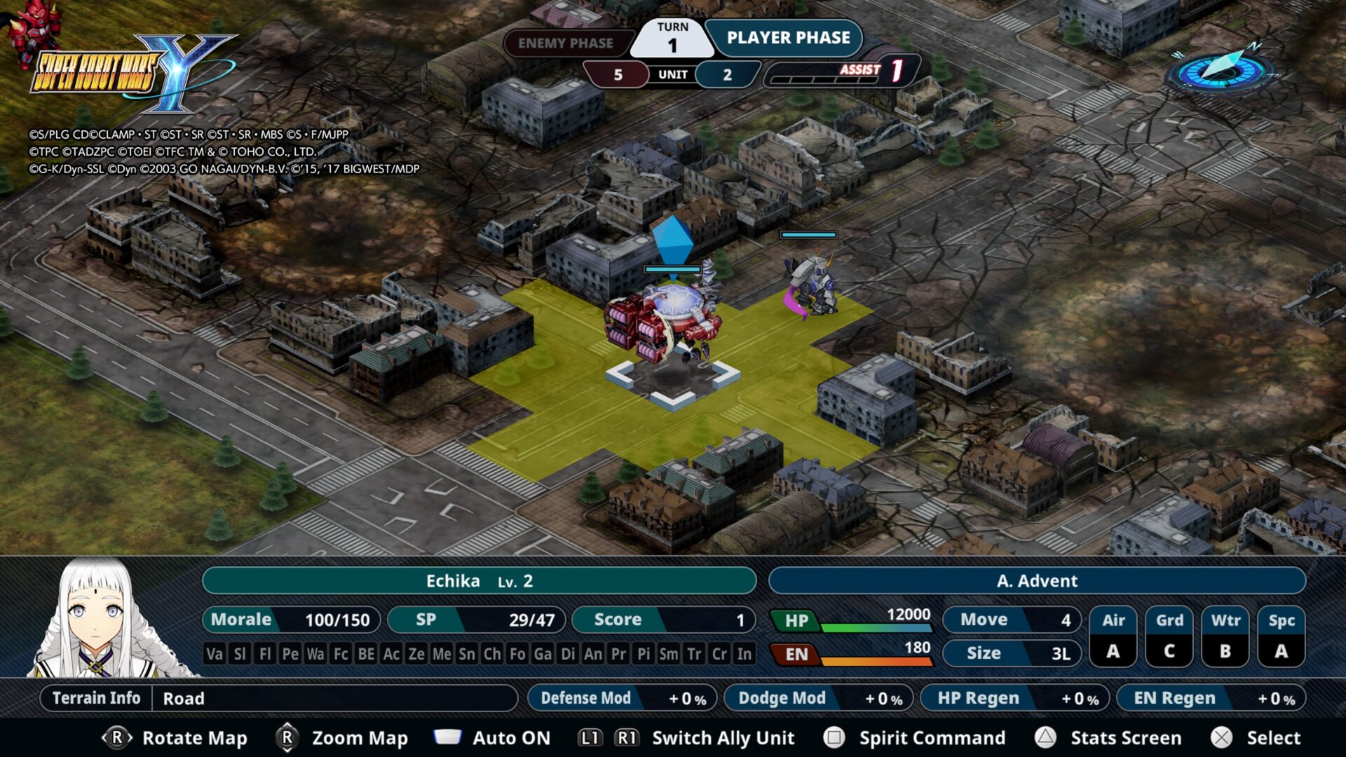 Super Robot Wars Y no es un juego difícil, al menos, en la dificultad estándar, pero sí tienes que poner un poco más de atención que en la entrega pasada, en la que prácticamente podías ganar usando los ataques más sencillos y sin ningún tipo de estrategia. El problema, nuevamente, radica en la falta de tutoriales o glosario extendido sobre las mecánicas de combate. Si eres un viejo conocido de la franquicia, no tendrás problema alguno. Pero si eres nuevo, seguramente necesitarás leer cuidadosamente unas horas, o buscar tutoriales en Internet para entender cómo funciona y cómo sacarle el máximo provecho a cada mecánica y submecánica.