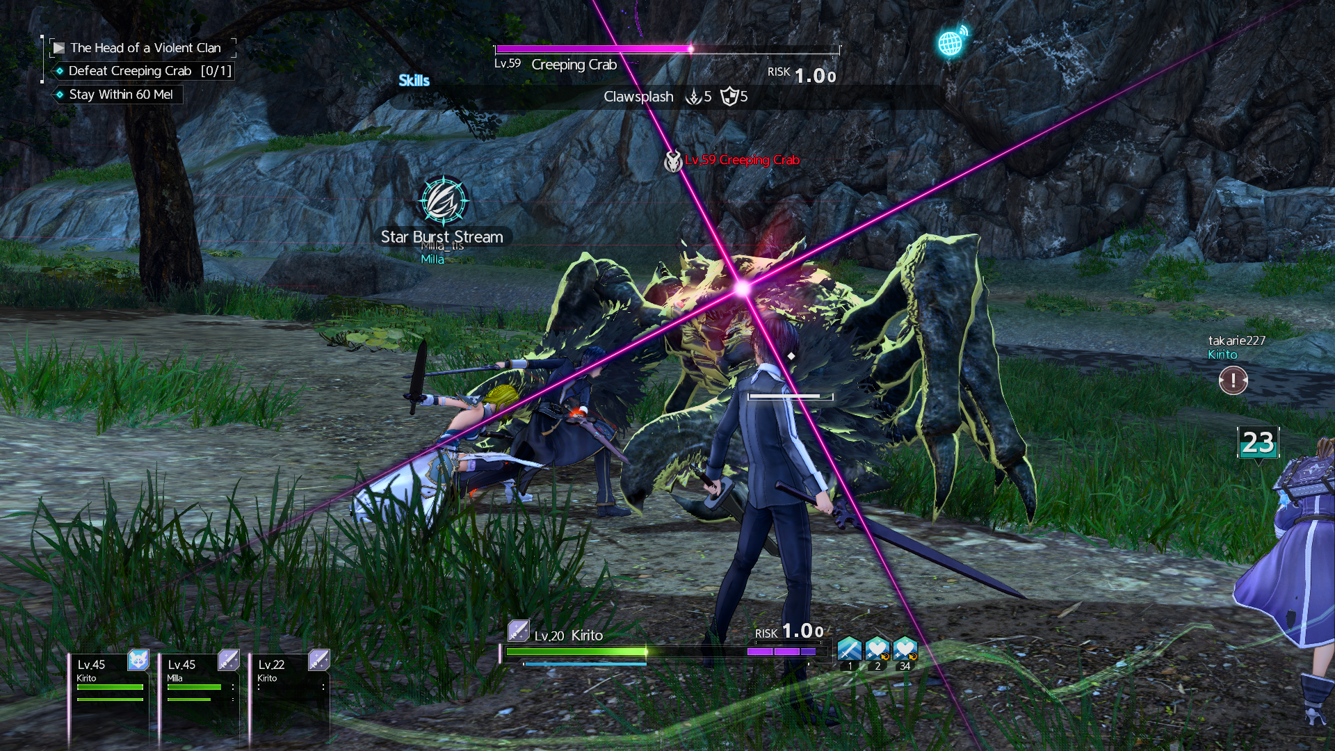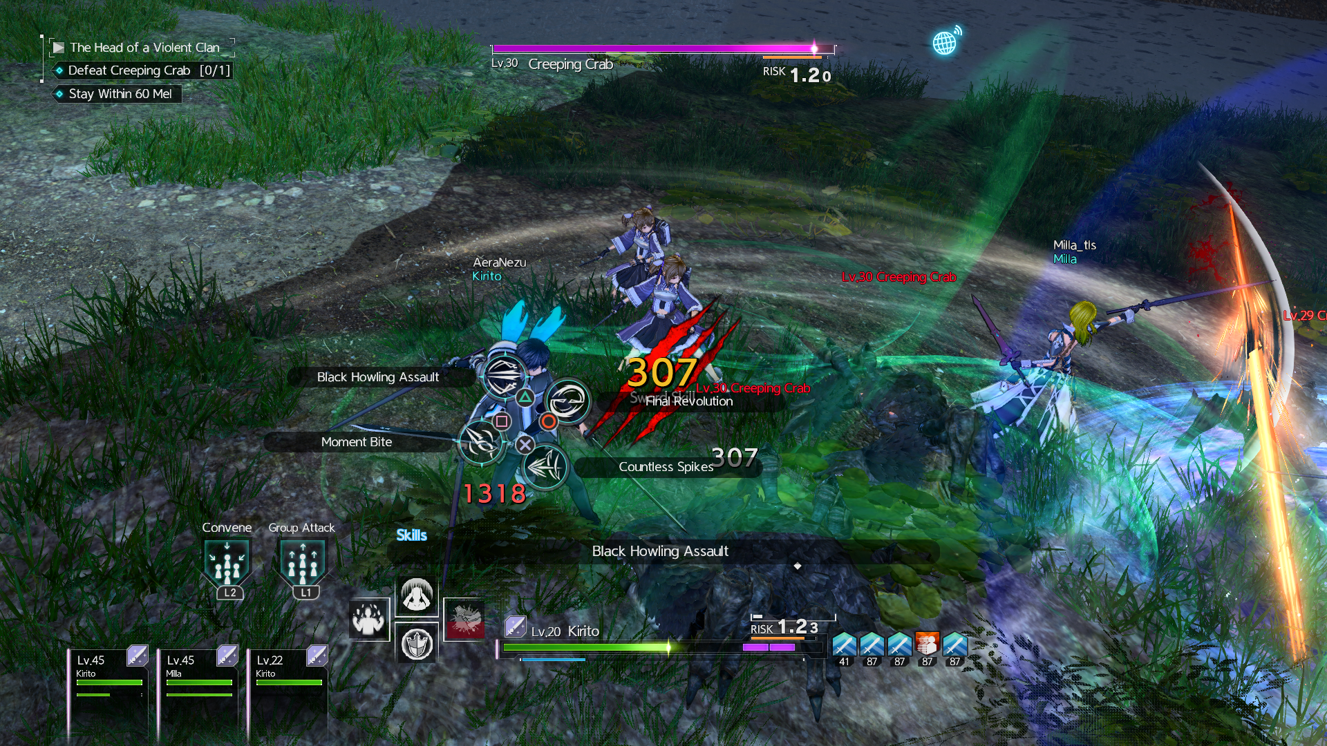 Pasando a temas más positivos, quiero retomar el modo online, el cual es potencialmente lo mejor de Alicization Lycoris. Es simplemente una delicia conectarte con otros jugadores e ir juntos en tiempo real a cumplir misiones y asesinar monstruos, pues las batallas en equipo son mucho más reales, inteligentes y apantallantes. Si consideras que para cuando desbloqueas este modo todos los jugadores ya tienen mucha experiencia, es muy satisfactorio ver cómo todo el equipo hace uso de sus habilidades especiales y artes sagradas para derrotar al enemigo. Además, afortunadamente el rendimiento en este aspecto se siente igual que en el juego base, por lo que si éste mejora con el parche, seguro también lo hará el otro. Hasta puedes personalizar a tu personaje en nombre, género y apariencia, para que realmente sientas como si tú estuvieras en Underworld. Si el aspecto más interesante de Sword Art Online como novela/anime ha sido ver a gente uniéndose para derrotar al mal, el modo online de Alicization Lycoris es lo más cerca a lo que hemos llegado en los juegos.