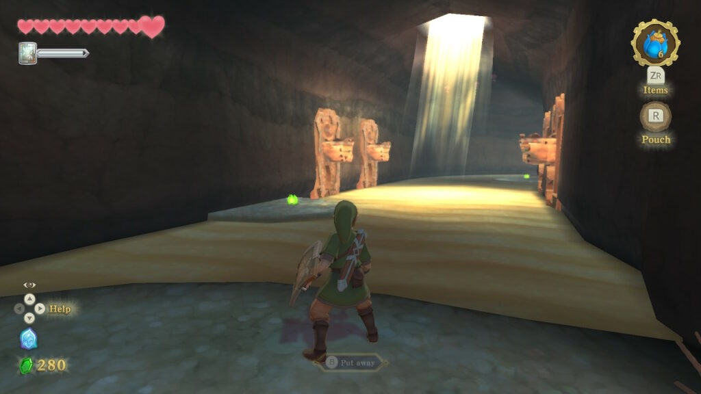 La buena noticia es que, como experiencia holística, Skyward Sword HD es sobresaliente. Es muy notorio que este juego es el precursor de Breath of the Wild, pues incluyó elementos como la barra de energía y una protoparavela que después fueron acertadamente retomados. Sin embargo, a pesar de sus limitaciones, Skyward Sword HD de hecho hace algunas cosas mucho mejor. La narrativa, como mencioné anteriormente, es épica, intrigante y emocionante, está llena de giros y de personajes entrañables. Por otra parte están los calabozos, un elemento esencial de la franquicia. Los calabozos en este juego son variados e interesantes, tienen un diseño visual distintivo y realmente ponen a prueba tu habilidad por medio de puzzles que debes resolver con tus habilidades de observación, y enemigos y jefes que debes derrotar con la velocidad de tus reflejos. A lo largo de tu aventura estás constantemente siendo puesto a prueba, lo que añade epicidad a la historia.