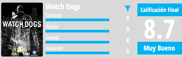 Watch Dogs por fin se encuentra entre nosotros y la espera ha valido la pena, con una historia bastante interesante y un gameplay sólido y novedoso, la nueva franquicia de Ubisoft se ha asegurado un lugar entre lo más destacable de este año y ha iniciado el camino de una nueva franquicia exitosa para la compañía. Seguramente en un futuro no muy lejano nos encontremos ante una secuela de este título que esperamos comprenda los errores cometidos por su antecesor y pula algunos detalles del juego. No cabe duda que la historia de Aiden Pearce y la de distintos habitantes de Chicago nos seguirá durante toda esta nueva generación y más allá.