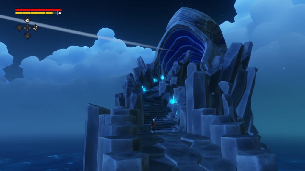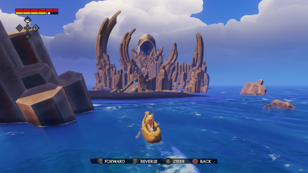 De hecho, la navegación marítima cobra suma importancia más allá de la exploración del arhipiélago. Entre cada capítulo de la narrativa, debes enfrentarte a un desafío de navegación, en el que debes llevar tu bote a salvo a un portal, evitando obstáculos como piedras, arrecifes y monstruos marinos. Estas secciones son particularmente divertidas, pues ponen a prueba tu habilidad de controlar el barco y las velas, al tiempo que una tormenta se cierne sobre ti y una dramática melodía suena en el fondo.